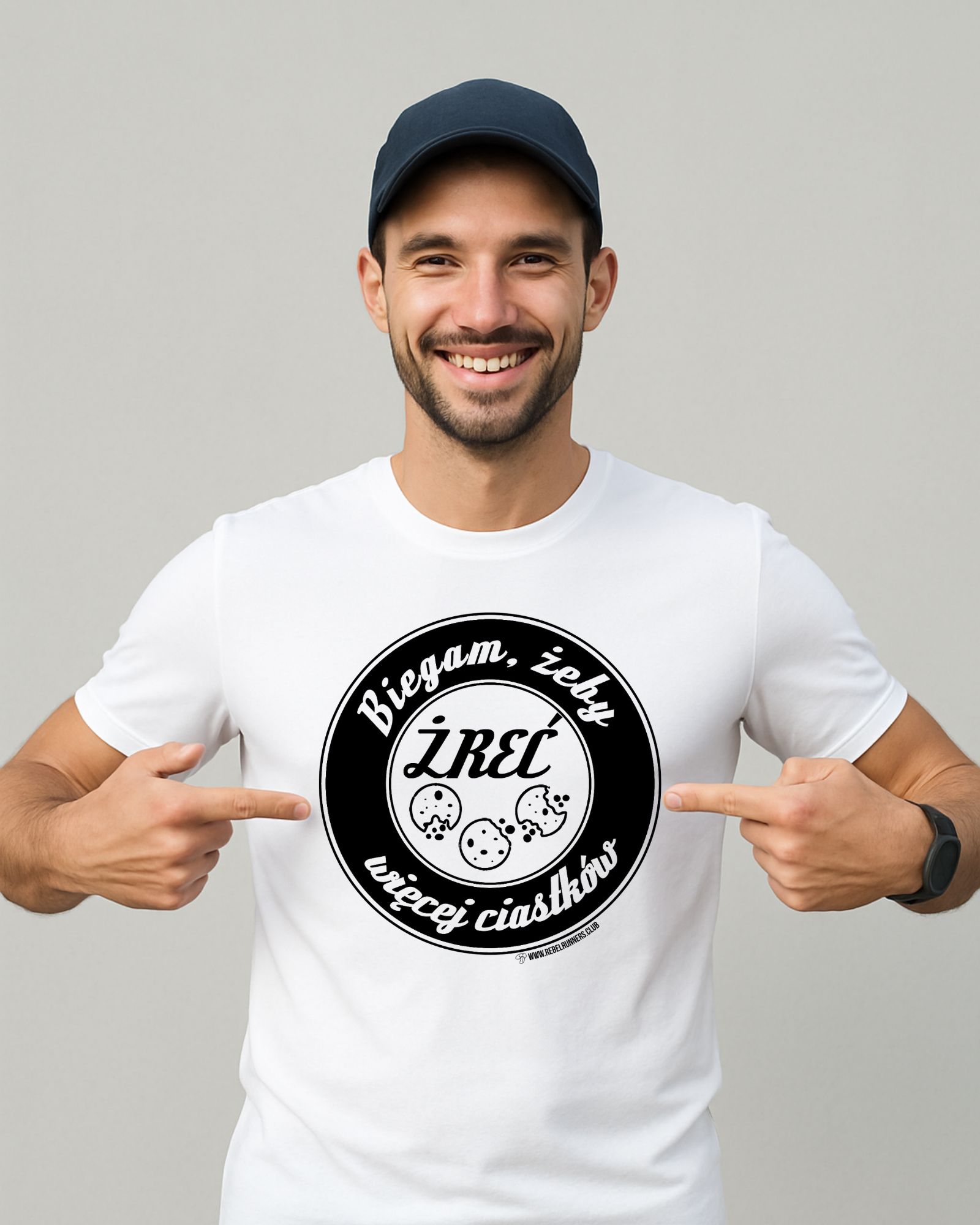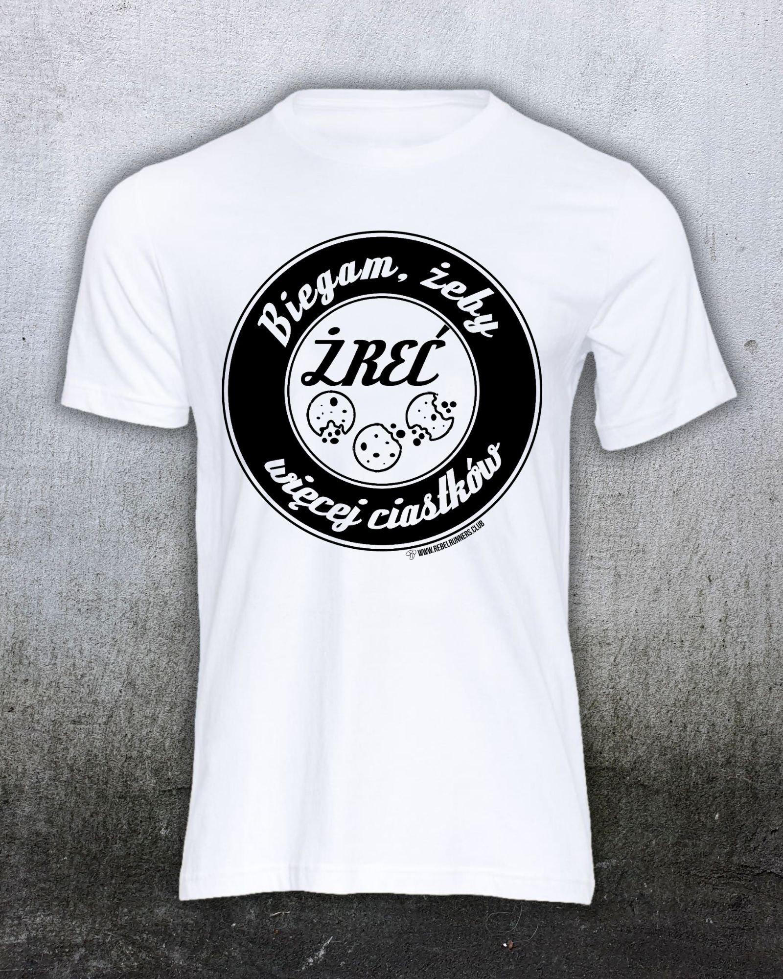Techniczna koszulka "Biegam, żeby żreć więcej ciastków" z TWOIM IMIENIEM! W okienku "Personalizacja" wpisz tekst jaki ma się pojawić na koszulce w miejscu "TWOJE IMIĘ"! Jeżeli nie wpiszesz nic - nic się nie stanie, koszulka będzie po prostu bez imienia.